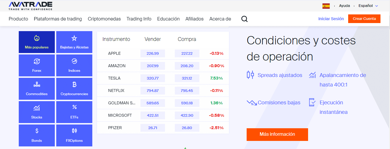 Para aquellos que buscan una gestión de riesgos sólida y una amplia gama de opciones de trading, incluida la negociación de CFD de criptomonedas, sugerimos AvaTrade. Este bróker ofrece varios instrumentos financieros, incluidos fondos cotizados en bolsa, CFD de criptomonedas y opciones.