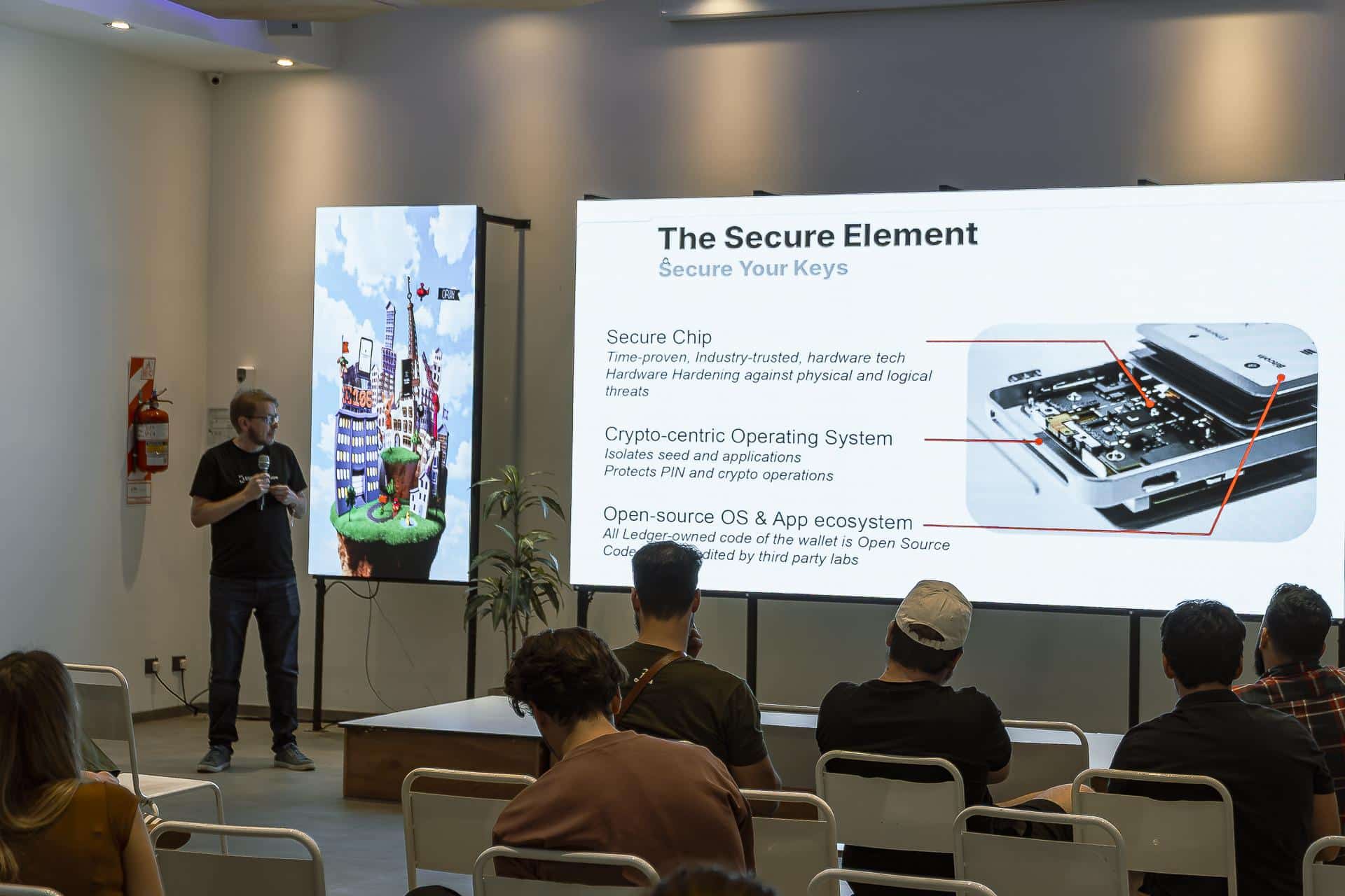 El anfitrión del evento fue Carl Anderson, VP of Engineering en Ledger, quien presentó de forma directa las tecnologías que buscan elevar el estándar de seguridad en Web3: